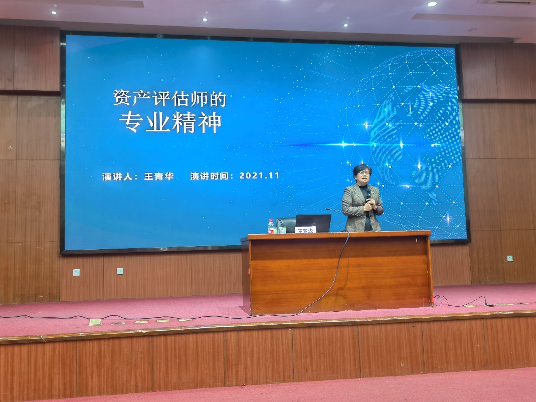 2021年11月25日18:00,我公司副董事長(cháng)王青華應邀參加首都經(jīng)貿大學(xué)財稅學(xué)院資產(chǎn)評估文化節活動(dòng),并為資產(chǎn)評估專(zhuān)業(yè)學(xué)生做了《評估師的專(zhuān)業(yè)精神》專(zhuān)題講座,講座在博學(xué)樓學(xué)術(shù)報告廳舉行,資產(chǎn)評估專(zhuān)業(yè)100多名學(xué)生參加了本次講座。