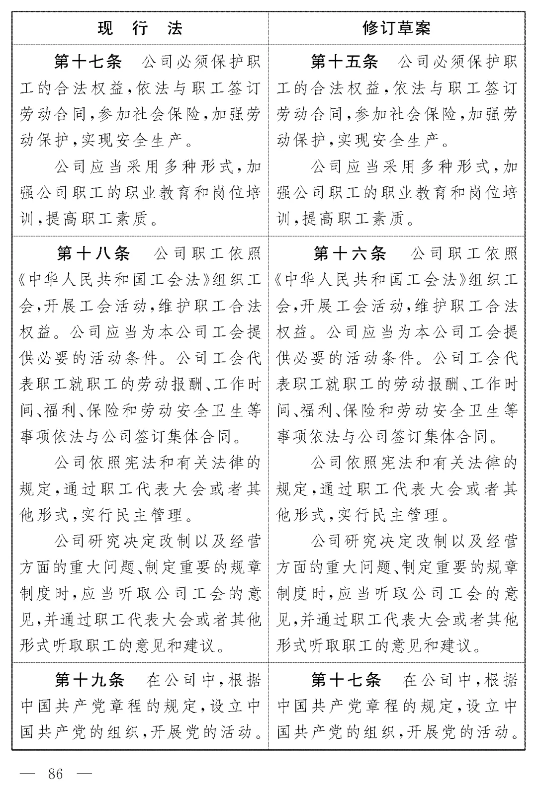 同時(shí),修訂草案繼續堅持現行公司法關(guān)于在各類(lèi)型公司中根據黨章規定設立黨的組織,開(kāi)展黨的活動(dòng),公司應當為黨組織的活動(dòng)提供必要條件等規定。(修訂草案第十七條)